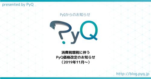 消費税法改正により、2019年10月1日(火)より、消費税および地方消費税率が8%から10%に引き上げられます。 これに伴い、PyQの有料プラン購読料を改定いたします。 PyQ個人プランの消費税増税に伴う価格改訂 個人プラン購読の改訂金額 個人ライトプラン 個人…