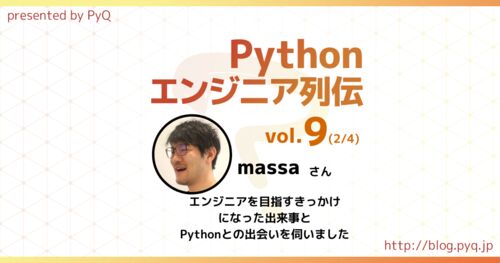 Pythonエンジニア列伝の第9回は、massaさんにお越しいただきました。 Pythonエンジニア列伝とは Pythonエンジニアとして活躍されている方々にインタビューする連載です。 Pythonを学ぶサービスであるPyQオフィシャルブログとして、Pythonを単なるプログラミ…