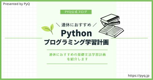 プログラミング言語「Python」の初歩的な文法を学習できる学習計画と無料キャンペーンを紹介します。 GWなどの連休中や隙間時間を活用して学習してみてはいかがでしょう?